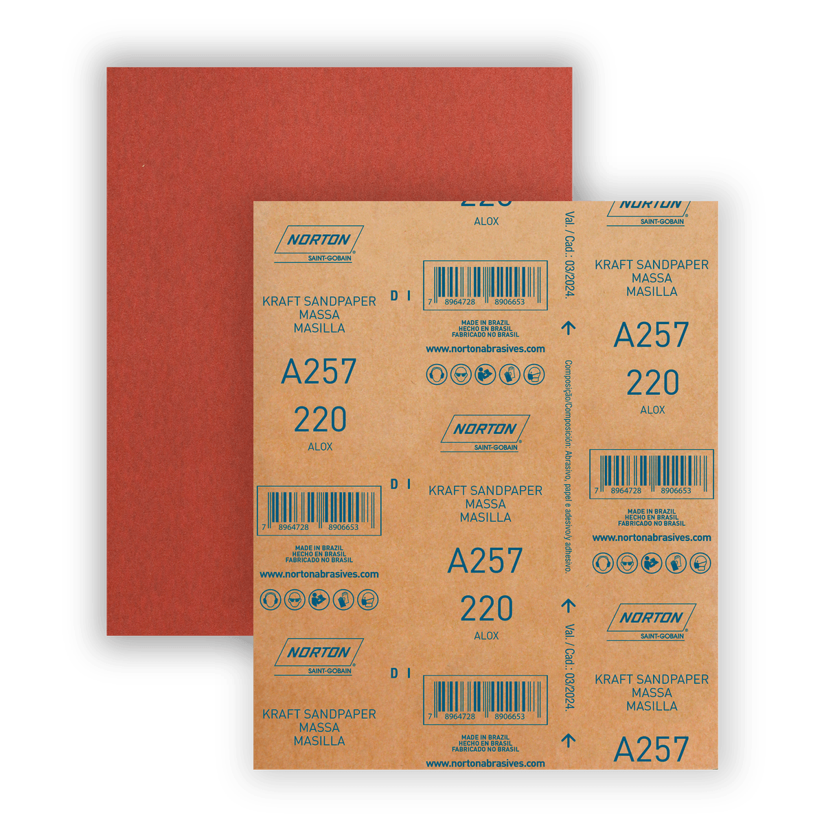 Além disso, a lixa de parede para pintura e massa corrida A257 da Norton possui grande variedade de grãos e pode ser usada também em lixadeiras vibratórias. Ela é composta por grão de óxido de alumínio, costado de papel e adesivo.